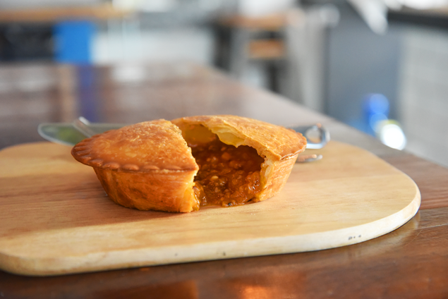 サクッサクッの生地にとろとろのミートが食欲をそそる。手作りならではのやさしい味が魅力。ミートパイ ブラウン /650円