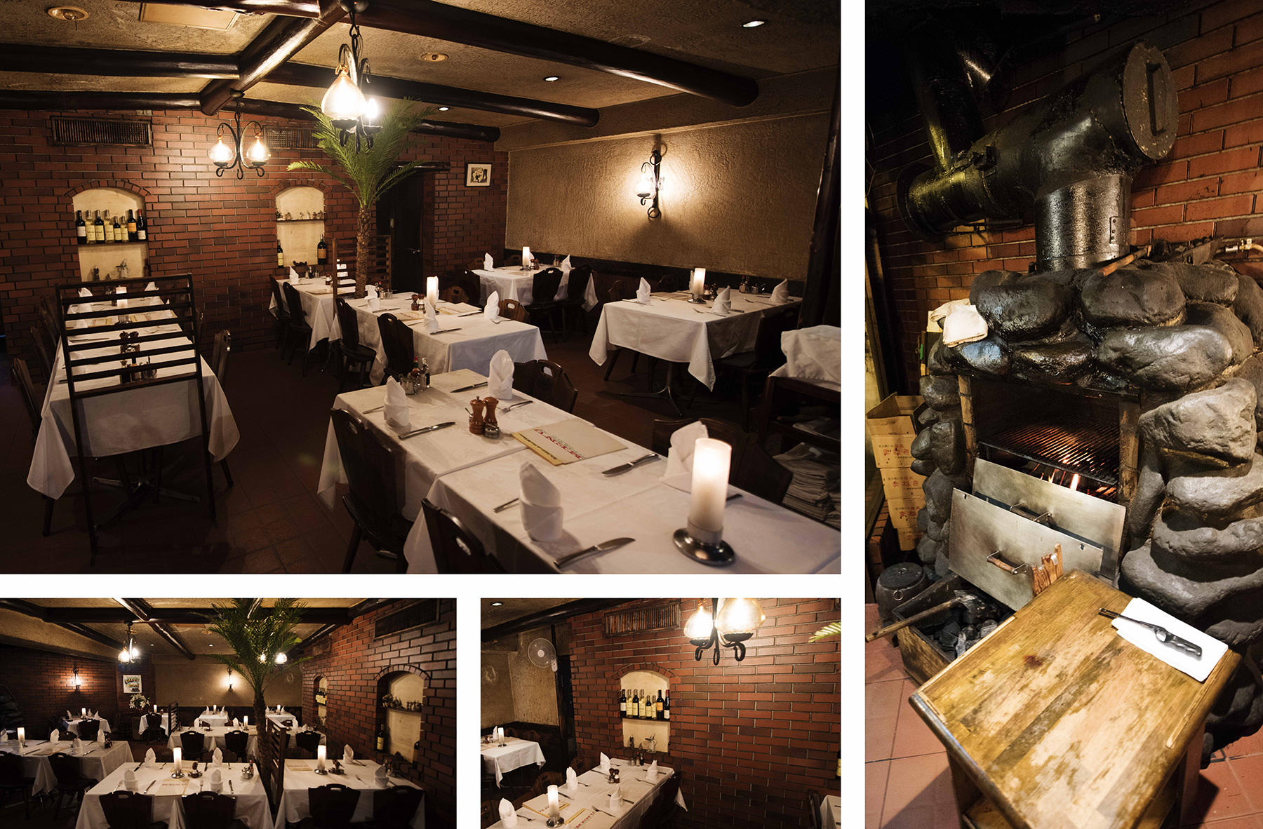 店内は開店当時の趣をそのまま残してあり、照明を抑えた内装にはムードがある。入口近くにある大きな石造りのかまどは、開店当時から38年分の肉の旨みを吸い続けているそうだ。
