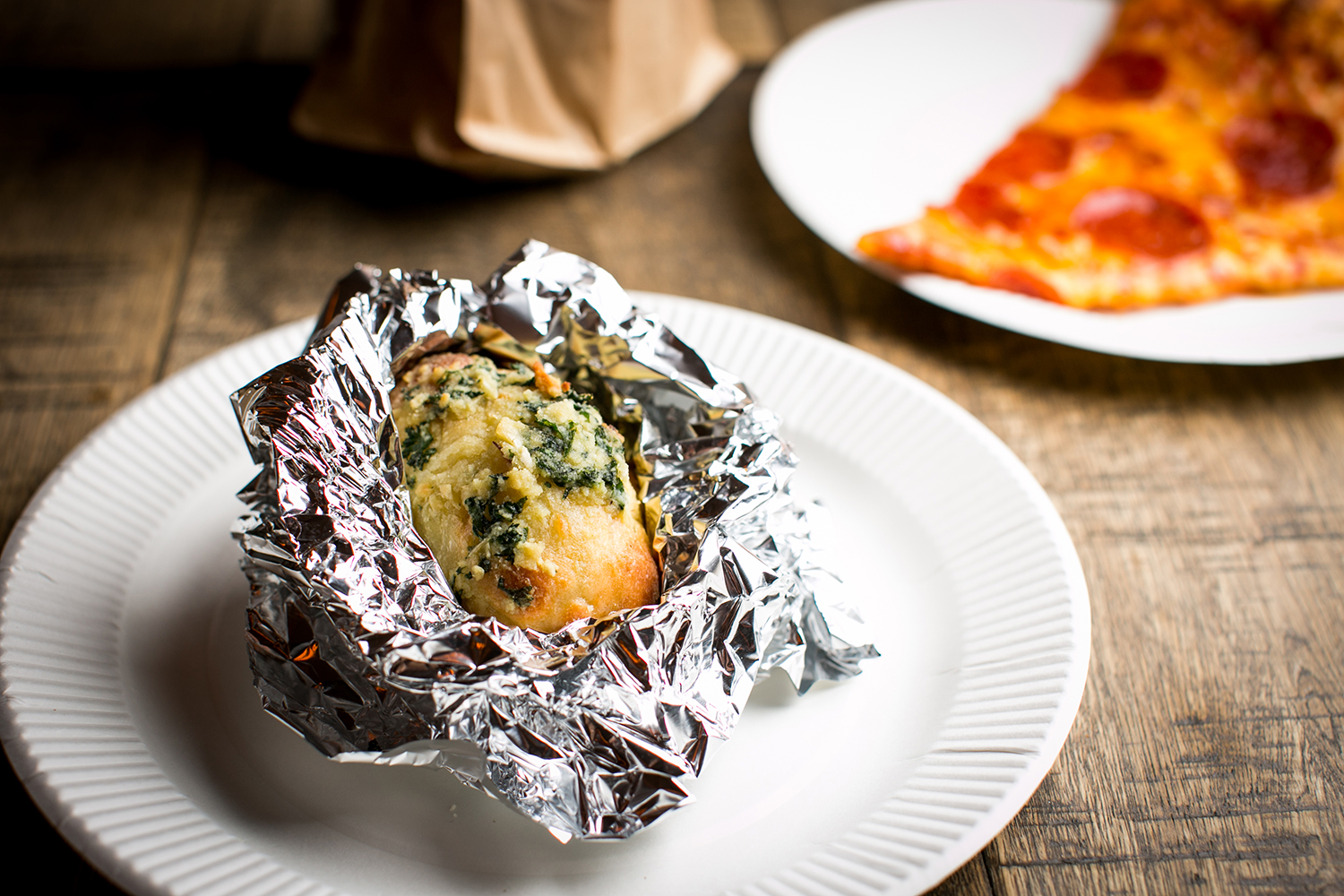 こちらはピザではなくガーリックのパン『ガーリックノット』。もちろんこちらも手作りで、パン生地の代わりにピザ生地を使用し、オリーブオイルとガーリックを染みこませた逸品だ。
