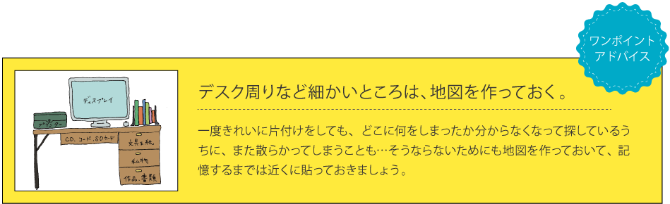 そんなことにならないためにも、家具や棚なども含め、最初に何をどこに置くか、おおまかに決めてから整頓を始めるとよいでしょう。
