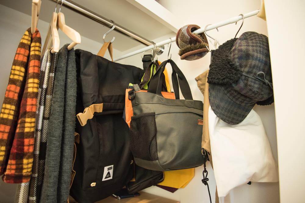 バッグやベルトなどは、S字フックで収納するのがおすすめ。また、突っ張り棒を利用することで、自在に収納スペースを作ることも可能です。その上に板をおいて棚を作るなど工夫次第で様々な収納スペースを生み出すスーパーアイテムです!