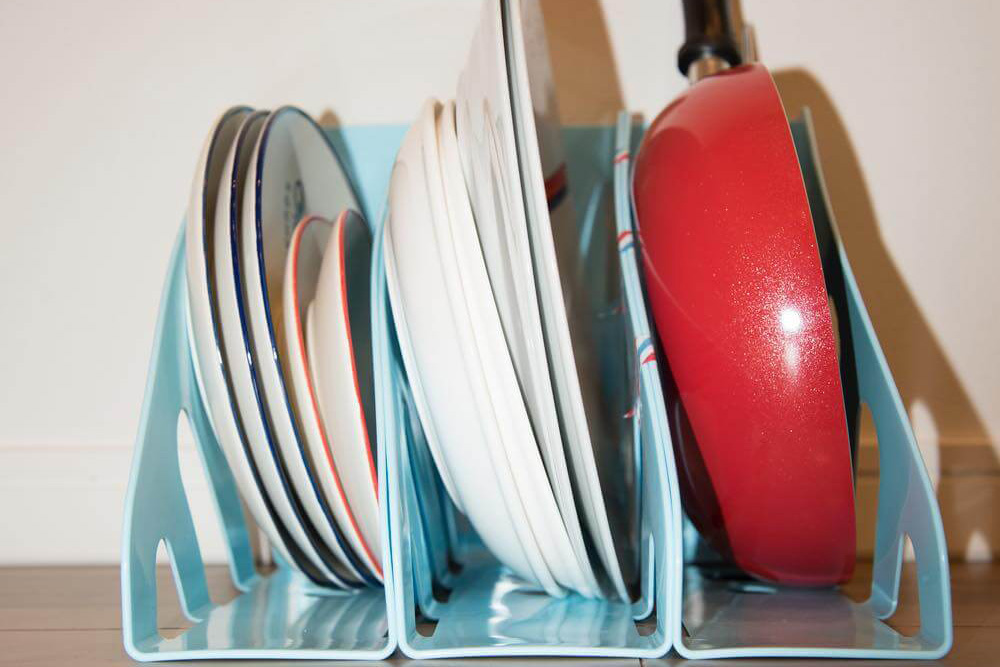 ブックスタンドは本だけでなくお皿を片付けるのにも役立つ万能ツールで、前方が空いているタイプだと、取り出しやすく使い勝手が良いです。