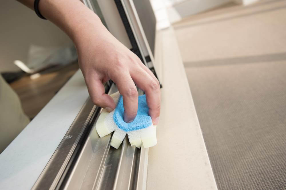 スポンジに切れ目を入れるだけで掃除しにくい窓のサッシを綺麗にできる万能ツールに!素材もやわらかく、隅にもしっかりフィットしてピカピカになります。