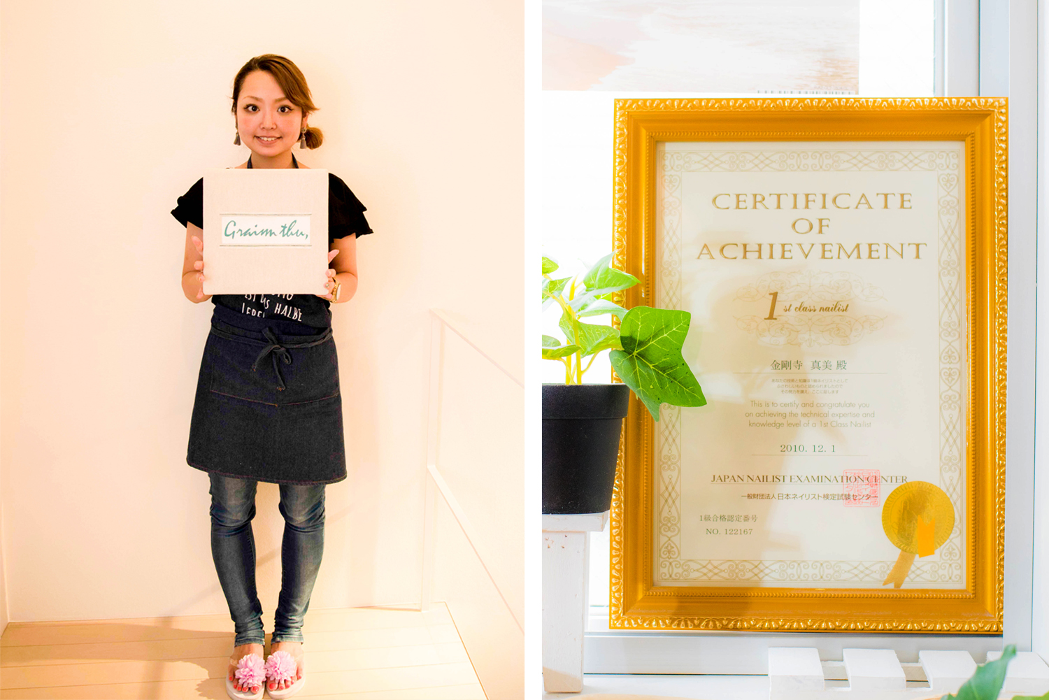 担当してくださったネイリスト・金剛寺真美さんは、大手サロンで8年間経験を積んだのち2016年に独立を果たしたベテランだ。ネイリスト検定1級の資格を持ち、芸能人も訪れる麻布十番の人気サロンでの実務経験もあるという。